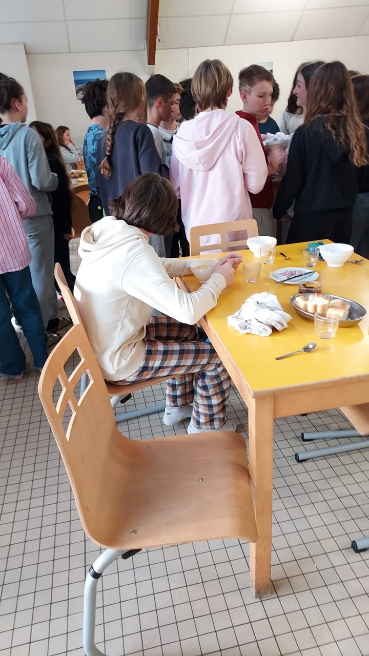 La matinee a debute par un petit-dejeuner, suivi d’une randonnee le long du halage de Pont-l’Abbe. Les eleves ont ensuite decouvert la ville a travers plusieurs lieux emblematiques : le bois Saint-Laurent, l’eglise Notre-Dame-des-Carmes, le monument pacifiste de Bazin, l’Excelsior, les halles, le chateau, la maison Le Minor ainsi que le pont habite.